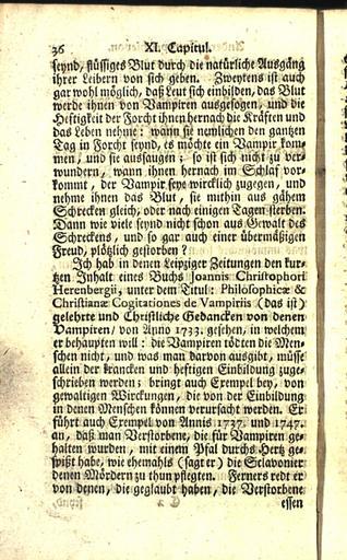 Keywords: Calmet – Gelehrte Verhandlung der Materi, Von Erscheinungen der Geistern, Und denen Vampiren in Ungarn, Mahren etc – Teil II – 036.jpg 035 037