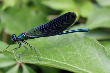 Keywords: calopteryx splenderns insect dragonfly leaf plants nature outside macro close-up damselfly