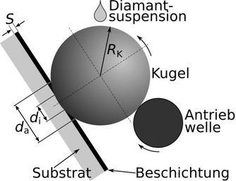Keywords: Calotte polish german.svg de Die Vorrichtung wird benutzt um ein Kalotte in die Oberfläche eines Festkörpers zu polieren Im Bereich der Kalotte können die Schichteigenschaften daraufhin im Detail untersucht werden Hier wird die Anwendung bei dünnen Hartstoffschichten dargestellt en This device is used to polish/grind a spherical surface in the surface of a solid state This spherical surface can be investigated in detail afterwards In this case here the usage for investigation of thin films/hard coatings is shown 2012-05-06 own Freundchen The embedded texts are in german so you may have to translate it for better understanding cc-zero Uploaded with UploadWizard Materials test Thin-film deposition