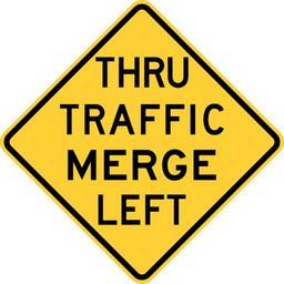 Keywords: Caltrans W74.svg Caltrans W74 CA THRU TRAFFIC MERGE LEFT sign Self made based on Caltrans sign drawing 2009-04-05 own assumed Overpush~commonswiki Diagrams of road signs of California Merge signs