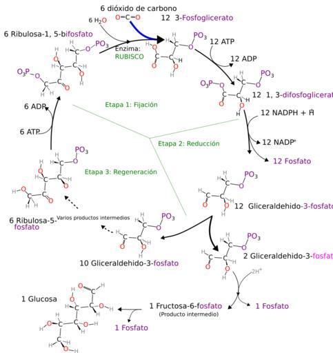Keywords: Calvinzyklus-es.svg es Esquema del ciclo de Calvin fijación del CO2 en la fase oscura de la fotosíntesis 2013-03-13 06 42 08 File Calvinzyklus svg Lanzi traducido al español por Alejandro Porto cc-zero Calvin cycle