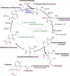 Keywords: Calvinzyklus.png Calvinzyklus im Detail self-made with Incscape korrigierte Fassung 2007-06-26 Lanzi Calvin cycle