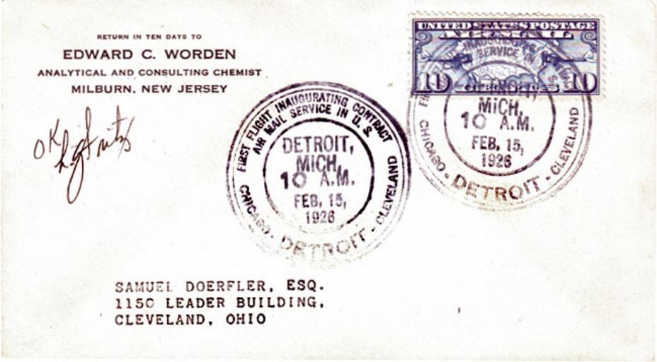 | Keywords: CAM 6 First Flight Feb. 15, 1926.jpg First flight cover carried over CAM-6 from Detroit to Cleveland on the first commercial U S Air Mail flight February 15 1926 Notes The contractor for this route was the Ford Motor Company operating as Ford Air Transport using a fleet of six Ford built http //www aerofiles com/_ford html Stout 2-AT single engine metal skin high wing monoplanes The cover is autographed by http //www dmairfield org/people/fritz_lg/index htm Lawrence G Fritz who was the pilot of the first flight from Ford Airport at Dearborn MI on the CAM-6 eastbound leg to Cleveland Capt Fritz was later the Vice President for Operations for TWA thumb right 180pxThe USPS issued a 13-cent commemorative Postage Stamp Scott 1684 on March 19 1976 honoring the 50th anniversary of U S commercial aviation launched with the Contract Air Mail service The stamp includes an image of the Stout AT-2 used on CAM-6 The Cooper Collection of Aero Postal History Photograph by uploader 1926-02-15 Centpacrr image Postage stamp CDS PD-USGov PD-USGov-pre1978stamp Anything else postal address etc PD-Pre1978 Original upload log en wikipedia Stefan4 CommonsHelper page en wikipedia CAM_6_First_Flight_Feb _15 2C_1926 jpg 2008-05-29 10 52 Centpacrr 649×358× 82063 bytes <nowiki>First flight cover carried over CAM-6 from Detroit to Cleveland on the first commercial U S Air Mail flight February 15 1926 The Cooper Collections </nowiki> Stamps of the United States 1921-1930 First flight covers Blue stamps |