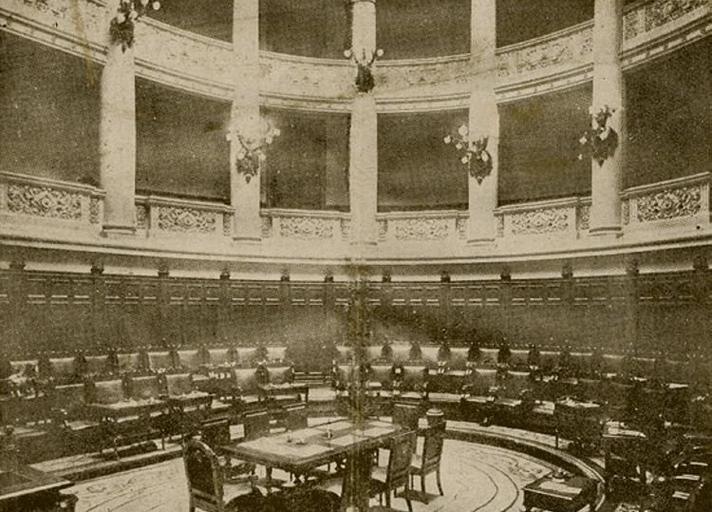 Keywords: Cámara de Senadores de Chile-1918.jpg Cámara de Senadores de Chile hacia 1918 Album del Congreso Nacional en su primer centenario 1818-1918 Ramón A Bolados C Santiago Imprenta España 1918 1918 author PD-Chile PD-Art National Congress of Chile Black and white photographs of buildings Plenary chambers |