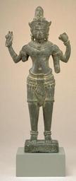 | Keywords: Cambodian - The Bodhisattva Avalokiteshvara - Walters 542689.jpg The last great king of Angkor Jayavarman VII turned away from the Hinduism of his predecessors and adopted Mahayana great vehicle Buddhism He thought of the bodhisattva eventual Buddha Avalokiteshvara embodiment of compassion as his spiritual father and identified his own father with him Avalokiteshvara has a small image of the Buddha of the western paradise on his headdress ca 1280 1290 bronze cm 8 16 with tang cm 18 3 accession number 54 2689 13127 New Road Bangkok prior to August 1949 Alexander B Griswold Monkton August 1949 by purchase presented to the Breezewood Foundation December 1960 inv no 458 Walters Art Museum Henry Walters Bequest of A B Griswold 1992 inscription no inscription Unearthly Elegance Buddhist Art from the Griswold Collection The Walters Art Gallery Baltimore 1995 place of origin Angkor Cambodia Walters Art Museum license Southeast Asian art in the Walters Art Museum Avalokiteshvara statues Sculptures from Cambodia Post-Bayon style |