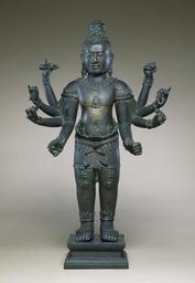 | Keywords: Cambodian - Eight-armed Avalokiteshvara - Walters 542726.jpg This figure of the Bodhisattva of Compassion is a bronze replica of one of the twenty-three stone images King Jayavarman VII sent to different parts of the kingdom in 1191 in a celebration of the compassion the king attributed to his own father The small figures of the Buddha can be understood as representing the qualities of Buddhahood that lie in every pore of Avalokiteshvara's skin and the figures around the waist are an outward manifestation of advanced techniques of meditation ca 12th-13th century Bàyon low-tin bronze cm 48 accession number 54 2726 9412 Brahmanical Temple Bot Phram Bangkok Alexander B Griswold Monkton July 1949 presented to the Breezewood Foundation December 1960 inv no 471 Walters Art Museum Henry Walters Bequest of A B Griswold 1992 Unearthly Elegance Buddhist Art from the Griswold Collection The Walters Art Gallery Baltimore 1995 place of origin Angkor Wat Cambodia Walters Art Museum license Southeast Asian art in the Walters Art Museum Sculptures from Cambodia Media contributed by the Walters Art Museum needs category review |
