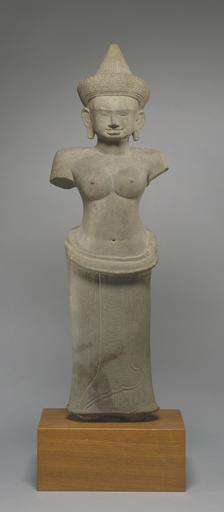 Keywords: Cambodian - Female Deity - Walters 25212.jpg This sculpture was carved during the same period that Angkor Wat a great temple dedicated to the Hindu god Vishnu was constructed The temple and its central image were intended to bring about the union of the soul of the king with Vishnu This goddess may be Vishnu's wife Lakshmi; originally sacred objects held in her hands would have identified her between 1110 1160 Angkor sandstone cm 64 8 20 3 accession number 25 212 32938 Lispenard and Ambassador Marshall Green 1994 Walters Art Museum Gift of Lispenard and Ambassador Marshall Green 1994 place of origin Cambodia Walters Art Museum license Southeast Asian art in the Walters Art Museum Sculptures from Cambodia Media contributed by the Walters Art Museum needs category review |