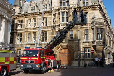 Keywords: Cambridge-TL-rising-2.jpg Photograph of a turntable ladder Own 2007-06-24 Ben Mills Benjah-bmm27 Images by Ben Mills Cambridgeshire Fire and Rescue Service Turntable ladders