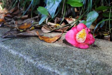 Keywords: camellia flower leaves fallen flowers fallen shoes having an affair