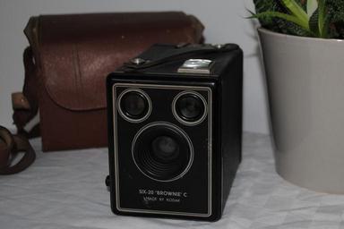 Keywords: camera flea market former photography picture kodak old vintage black pannier leather brown