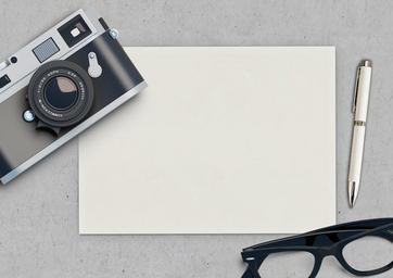 Keywords: camera glasses pen paper desk blank empty writing notes note paper note pad