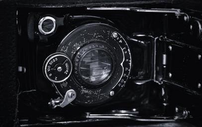 Keywords: camera inner workings antique old dusty photography black and white recording close
