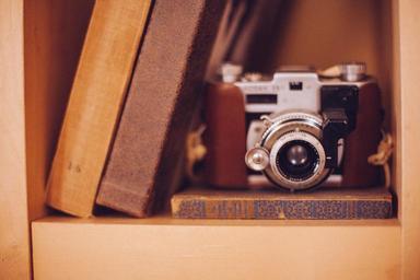 Keywords: camera photography vintage slr single-lens reflex camera book shelf furniture books interior decoration interior design old