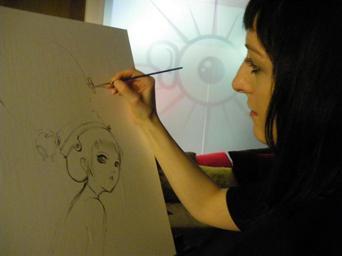 MAKE A MEME View Large Image Camilla d'Errico Painting.JPG en Camilla d'Errico painting live own Adapiadm 2009-12-19 Photographs of painters at work