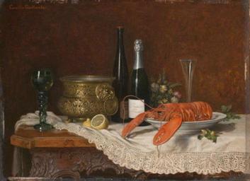 Keywords: Camilla Friedlaender 1856- - Zatisi s humrem.jpg Zátiší s humrem oil Size cm 21 00 28 00 Institution Národní galerie v Praze Národní galerie v Praze National Gallery in Prague before 1888 Creator Camilla Friedländer Other versions PD-old-auto-1923 1928 Paintings in the Národní galerie v Praze Camilla Friedländer Lobsters in art Champagne bottles