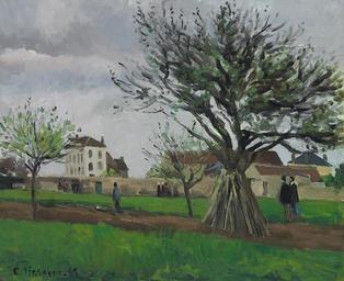 | Keywords: Camille Pissarro - Pommiers Pontoise (La maison du père Gallien).jpg Artwork Creator Camille Pissarro Title Æbletræer i Pontoise Père Galliens hus Apple Trees at Pontoise the House of Père Gallien Pommiers à Pontoise La maison du père Gallien 1868 oil on canvas cm 38 3 46 4 Institution Private collection accession number C Pissarro 68 ~ lower left signature and date 2009 11 03 page no longer available see also http //www christies com/lotfinder/ZoomImage aspx image /LotFinderImages/D52585/D5258550 File page Other versions http //nevsepic com ua/uploads/posts/2012-07/1343406631-1901190-apple-trees-at-pontoise-the-house-of-pere-galien-1885 jpg Image by nevsepic com ua Q21716250 PD-old-100 Paintings of Pontoise by Camille Pissarro 1860s landscape paintings Apple trees in art 1868 paintings by Camille Pissarro |