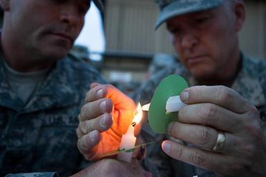 | Keywords: Camp Eggers Memorial Service (4656948570).jpg 100531-N-6939M-003 Kabul Afghanistan May 31 2010 Col Ronald Green and Col Terrence O ™Sullivan Light candles during a ceremony held in honor of all fallen comrades of all wars and all nations is held at Camp Eggers Kabul Afghanistan During his speech Lt Gen William B Caldwell IV Commanding General of NATO Training Command “ Afghanistan asked the question what does it takes for a regular citizen to rise to the challenge and be willing to make the ultimate sacrifice in service to their nation Caldwell answers the question with the values of loyalty duty respect selfless-service honor integrity and personal courage- adding that each and every nation shows these values in their service to their countries Ending thoughts from Caldwell “ let us all use this day to focus our thoughts and prayers to cherish the memory of those loved and lost in the defense of our nations Camp Eggers is headquarters to NATO Training Command - Afghanistan Photo by Mass Communications Specialist 1st Class Christopher Mobley http //www flickr com/photos/ntm-a_cstc-a/4656948570/ Camp Eggers Memorial Service Uploaded by russavia 2010-05-31 19 01 http //www flickr com/people/44825691 N08 NATO Training Mission-Afghanistan PD-USGov File Upload Bot Magnus Manske 2013-07-13 Camp Eggers Files from NATO Training Mission-Afghanistan Flickr stream Files uploaded by Russavia 2010 in Afghanistan Ronald L Green |