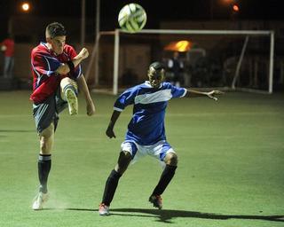| Keywords: Camp Lemonnier World Cup - Djibouti vs. USA 140202-N-LE393-754.jpg en An American player kicks the ball during the championship soccer match of the 2014 Camp Lemonnier World Cup held between a Djiboutian army team and a joint-service American military team at Camp Lemonnier Djibouti Feb 2 2014 The American team won 5-3 after a penalty shoot-out The tournament featured military teams from South Korea Djibouti America Spain Italy Germany France and Japan U S Navy photo by Mass Communication Specialist 1st Class Eric Dietrich/Released 2014-02-02 Petty Officer 1st Class Eric Dietrich https //www dvidshub net/image/1161584 140202-N-LE393-754 2014-02-05 06 22 CAMP LEMONNIER DJ PD-USGov-Military-Navy Camp Lemonnier Images from DoD uploaded by Fæ |