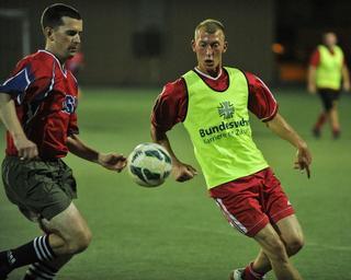| Keywords: Camp Lemonnier World Cup - USA vs. Germany 140128-N-LE393-786.jpg en Players vie for control of the ball during a soccer match between a German military team in yellow and an American military team at Camp Lemonnier Djibouti Jan 28 2014 The Americans won the match 6-0 and will advance to the finals of the 2014 Camp Lemonnier World Cup U S Navy photo by Mass Communication Specialist 1st Class Eric Dietrich/Released 2014-01-28 Petty Officer 1st Class Eric Dietrich https //www dvidshub net/image/1161571 140128-N-LE393-786 2014-02-05 06 13 CAMP LEMONNIER DJ PD-USGov-Military-Navy Camp Lemonnier Images from DoD uploaded by Fæ |
