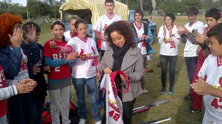 | Keywords: softball cardenales reynoso people outdoor La embajadora Julissa Reynoso participó el sábado 18 de mayo, de una jornada de softball con los chicos de Campos de Sueños, un proyecto que apunta a motivar niños y niñas de humilde extracción y condición a través del deporte y alejarlos de las malas influencias, la delincuencia, la drogadicción y la exclusión social. [U.S. Embassy photo by Vince Alongi / Copyright info] La embajadora Julissa Reynoso participó el sábado 18 de mayo, de una jornada de softball con los chicos de Campos de Sueños, un proyecto que apunta a motivar niños y niñas de humilde extracción y condición a través del deporte y alejarlos de las malas influencias, la delincuencia, la drogadicción y la exclusión social. [U.S. Embassy photo by Vince Alongi / Copyright info] |