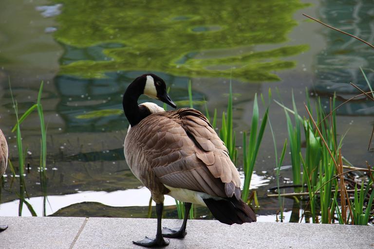 Keywords: canada goose goose white green water pond bird water bird birds nature aquatic animals plumage wing swim animal duck bird