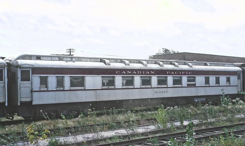 Keywords: outdoor vehicle train railroad A Roger Puta Photograph The following is thanks to Rainier_Rails: Travers is a 12 section-1 drawing room (12S-1DR) sleepers. The following info is taken from the online PDF documents of extant Canadian railroad equipment published by the Bytown Railway Society: [www.bytownrailwaysociety.ca] Travers was built by CC&amp;F in April 1930 as the Somerset, renamed in June 1948 to Travers, retired in 1980 (likely in MofW service by that time, but no number listed) and sold or donated to the Ontario Rail Association, then acquired in 1989 by the Canadian Museum of Rail Travel as the Somerset. The museum is located in Cranbrook, BC, and was formally known as the Cranbrook Railway Museum. A Roger Puta Photograph The following is thanks to Rainier_Rails: Travers is a 12 section-1 drawing room (12S-1DR) sleepers. The following info is taken from the online PDF documents of extant Canadian railroad equipment published by the Bytown Railway Society: [www.bytownrailwaysociety.ca] Travers was built by CC&F in April 1930 as the Somerset, renamed in June 1948 to Travers, retired in 1980 (likely in MofW service by that time, but no number listed) and sold or donated to the Ontario Rail Association, then acquired in 1989 by the Canadian Museum of Rail Travel as the Somerset. The museum is located in Cranbrook, BC, and was formally known as the Cranbrook Railway Museum. A Roger Puta Photograph The following is thanks to Rainier_Rails: Travers is a 12 section-1 drawing room (12S-1DR) sleepers. The following info is taken from the online PDF documents of extant Canadian railroad equipment published by the Bytown Railway Society: [ www.bytownrailwaysociety.ca ] Travers was built by CC&F in April 1930 as the Somerset, renamed in June 1948 to Travers, retired in 1980 (likely in MofW service by that time, but no number listed) and sold or donated to the Ontario Rail Association, then acquired in 1989 by the Canadian Museum of Rail Travel as the Somerset. The museum is located in Cranbrook, BC, and was formally known as the Cranbrook Railway Museum. Canadian Pacific TRAVERS Octoner 1971 (22286476510).jpg en A Roger Puta Photograph<br> The following is thanks to Rainier_Rails <br> Travers is a 12 section-1 drawing room 12S-1DR sleepers The following info is taken from the online PDF documents of extant Canadian railroad equipment published by the Bytown Railway Society http //www bytownrailwaysociety ca<br> Travers was built by CC F in April 1930 as the Somerset renamed in June 1948 to Travers retired in 1980 likely in MofW service by that time but no number listed and sold or donated to the Ontario Rail Association then acquired in 1989 by the Canadian Museum of Rail Travel as the Somerset The museum is located in Cranbrook BC and was formally known as the Cranbrook Railway Museum 2015-09-30 11 44 43 https //www flickr com/people/129679309 N05 railfan 44 https //www flickr com/photos/129679309 N05/22286476510/ User Fæ/Flickr API Puta's CP and Roads absorbed into CP Mel Finzer RogerPuta Photographs by Roger Puta Photos uploaded from Flickr by Fæ using a script 1971 in rail transport in the United States |