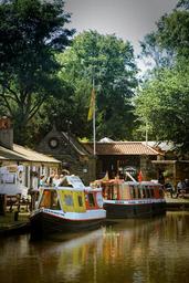 Keywords: canal linlithgow scotland long boat boat beautiful trees water cafe