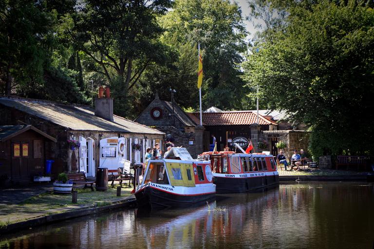 Keywords: canal linlithgow scotland long boat boat beautiful trees water cafe
