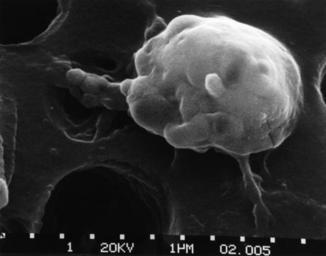 | Keywords: Cancer cells- death (step 5).jpg Step-five of a six-step sequence of the death of a cancer cell A cancer cell has migrated through the holes of a matrix coated membrane from the top to the bottom simulating natural migration of a invading cancer cell between and sometimes through the vascular endothelium The cancer cell appears lumpy in the last stage before it dies These lumps are actually the macrophages fused within the cancer cell step 5 Photo magnification x56 000 See also http //visuals nci nih gov/details cfm imageid 2369 http //visuals nci nih gov/details cfm imageid 2370 http //visuals nci nih gov/details cfm imageid 2371 http //visuals nci nih gov/details cfm imageid 2372 http //visuals nci nih gov/details cfm imageid 2373 Topics/Categories Cells or Tissue Abnormal Cells or Tissue Type B W Photo Source Dr Raowf Guirguis National Cancer Institute Susan Arnold Photographer 2372 1988-10 Reuse Restrictions None - This image is in the public domain and can be freely reused Please credit the source and/or author listed above Susan Arnold Photographer PD-USGov-HHS-NIH Media from National Cancer Institute Visuals Online Images uploaded by Fæ |
