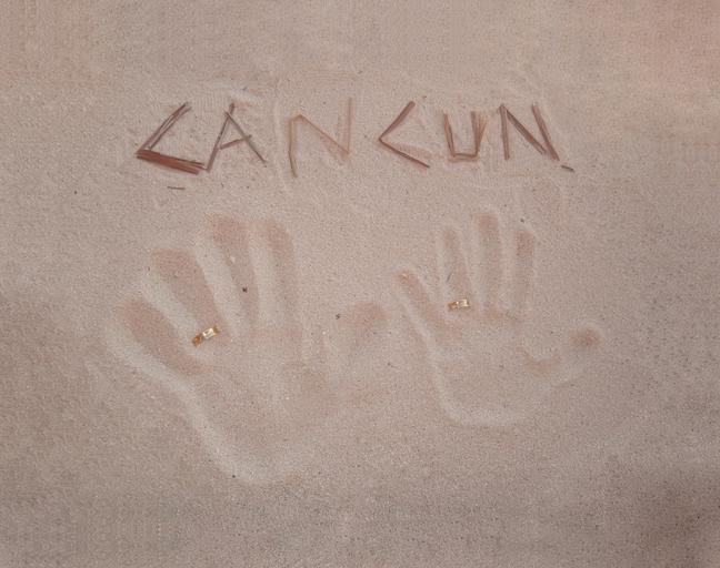 Keywords: cancun beach honeymoon marriage hands sand love alliance union together gold male female casal family sacramento footprint