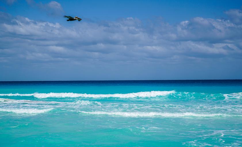 Keywords: cancun mexico beach bird flying coastline tropical sea travel ocean caribbean nature blue landscape coast sky tourism outdoor clouds
