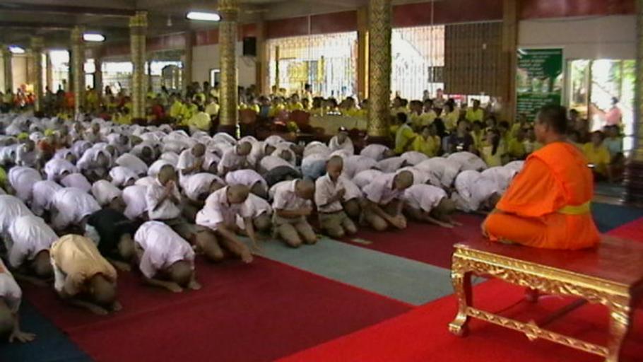 | Keywords: Candidate for the Buddhist child priesthood01.JPG นาคนัก รียน ู้ ข้าบรรพชากำลังกราบพระอุปัชฌาย์ในการบรรพชาสาม ณรหมู่ Candidates for the Buddhist child priesthood are humbling theirselves before a preceptor in a group ordination of the novitiate own 2007 Ordination at Wat Khung Taphao Buddhist child monks ordination of Thailand Buddhist traditions in Wat Khung Taphao | ||||