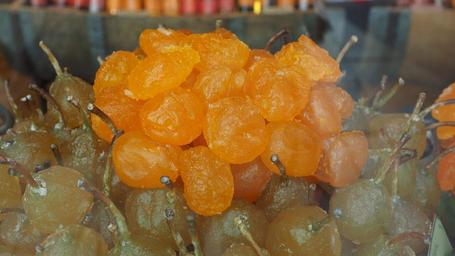 Keywords: candied fruit fruits candied konfiert method of preservation preserved grapes sweet zuckrig apricots