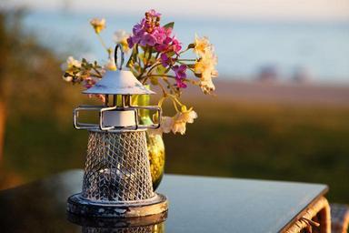 Keywords: arrangement candle decoration dining flower holder nature romance romantic stand table restaurant beach sunset evening