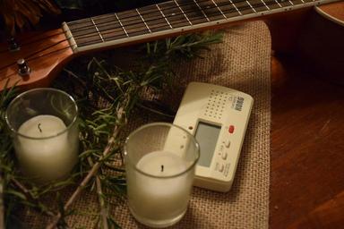Keywords: candles guitar white tuner instrument musical music celebration christmas objects items glass festive ukelele