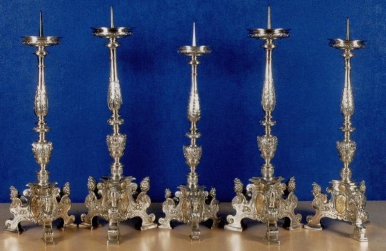 | Keywords: Candlesticks of Constance of Austria.jpg Candlesticks of Constance of Austria Świeczniki Konstancji Austriaczki ca 1624-1625 Silver gilt cm 70 5 66 63 Church of St James Nysa accession number object history < 1624 commission Constance of Austria Warsaw < 1655 gift Church of St James in Nysa Charles Ferdinand Vasa credit line Initially a set of 6 altar candlesticks Base adorned with cartouches with emblems of Poland Lithuania Sweden Gothland and the Habsburgs arms of Queen Constance of Austria cherubs winged heads and friuts own BurgererSF Copyright expired PD-Art Saints James and Agnes Basilica in Nysa Goldsmithery from the Polish Vasa Collection Church candlesticks Johannes Lencker |