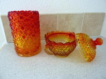 Keywords: candy bowl glassware carnival glass bowl decoration dishes kitchen collectable design orange colorful beautiful shape color pretty display cut glass