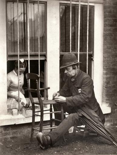 Keywords: street_life_in_london streetlifeinlondon caney the clown caneytheclown monochrome From 'Street Life in London', 1877, by John Thomson and Adolphe Smith: 'After playing in many provincial theatres, Caney finally made his debut in London on the boards of the old Garrick, the Britannia, and the Standard. He rendered good services at these houses in the cause of the people's amusement. No consideration of bone or nerve interfered with his assaults on the pantaloon. He was irrepressible in the matter of bonneting the police; and he tumbled and danced, and fought, and shouted to the delight of his rough and ready audiences, - and, poor fellow, to his own disadvantage. His exertions to please the people who greeted his first sally with vehement applause, caused the bursting of a varicose vein in his leg, and Caney's successful career was over. There was not enough bodily strength left in him even for a pantaloon. After enduring an operation which was performed at old St Thomas's Hospital, Caney was finally pronounced to be cured, but forbidden to attempt any violent exercise. [...] But of all the work he undertook, that of mending chairs seems to have brought him the most constant employment. In all cases his friends are of this opinion, for they have unanimously dubbed him" Caney," and it is under this soubriquet that he is best known in the purlieus of Drury Lane. At times, however, the old spirit broke loose again, and though he never appeared on the boards of any theatre, he has often graced the streets with some of his clownish antics. At Christmas, and other holiday seasons, he sometimes resorts to the familiar hare's foot and rouge, dons a clown's suit, which is certainly the worse for wear, and follows a band of itinerant street performers, among whom his superior accomplishments and experience insure ready welcome.' For the full story, and other photographs and commentaries, follow this link and click through to the PDF file at the bottom of the description archives.lse.ac.uk/Record.aspx?src=CalmView.Catalog&i... From 'Street Life in London', 1877, by John Thomson and Adolphe Smith: 'After playing in many provincial theatres, Caney finally made his debut in London on the boards of the old Garrick, the Britannia, and the Standard. He rendered good services at these houses in the cause of the people's amusement. No consideration of bone or nerve interfered with his assaults on the pantaloon. He was irrepressible in the matter of bonneting the police; and he tumbled and danced, and fought, and shouted to the delight of his rough and ready audiences, - and, poor fellow, to his own disadvantage. His exertions to please the people who greeted his first sally with vehement applause, caused the bursting of a varicose vein in his leg, and Caney's successful career was over. There was not enough bodily strength left in him even for a pantaloon. After enduring an operation which was performed at old St Thomas's Hospital, Caney was finally pronounced to be cured, but forbidden to attempt any violent exercise. [...] But of all the work he undertook, that of mending chairs seems to have brought him the most constant employment. In all cases his friends are of this opinion, for they have unanimously dubbed him" Caney," and it is under this soubriquet that he is best known in the purlieus of Drury Lane. At times, however, the old spirit broke loose again, and though he never appeared on the boards of any theatre, he has often graced the streets with some of his clownish antics. At Christmas, and other holiday seasons, he sometimes resorts to the familiar hare's foot and rouge, dons a clown's suit, which is certainly the worse for wear, and follows a band of itinerant street performers, among whom his superior accomplishments and experience insure ready welcome.' For the full story, and other photographs and commentaries, follow this link and click through to the PDF file at the bottom of the description archives.lse.ac.uk/Record.aspx?src=CalmView.Catalog&i...