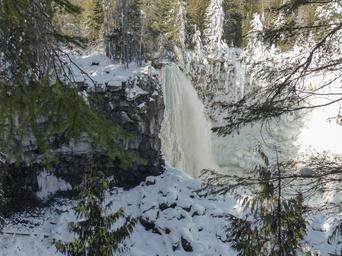 Keywords: canim falls british columbia canada frosted tree forest canyon waterfall landscape nature scenery ice cold bitter cold countryside winter season water fall water snow ice
