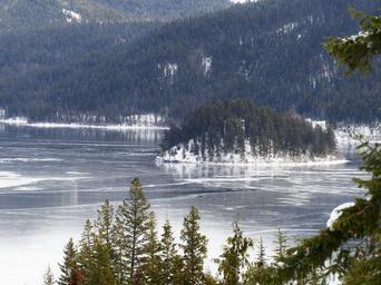 Keywords: canim lake british columbia canada winter snow cold season mountains water frozen lake landscape scenery ice
