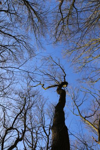 Keywords: canopy forest trees crown treetop branches log sky nature german forest