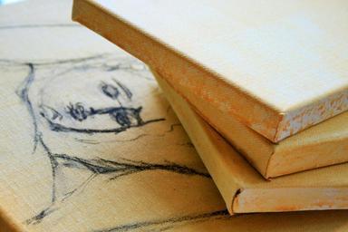 Keywords: canvas streched art prepared wash yellow ochre sketch charcoal