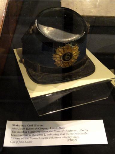 | Keywords: Cap, shako - Framingham History Center - DSC00414.JPG Shako cap Civil War era Exhibit in the Framingham History Center Edgell Memorial Library 3 Oak Street Framingham Massachusetts USA Photography was permitted in the museum without restriction I took this photograph 2011-07-09 14 22 23 Daderot Public domain Framingham History Center |