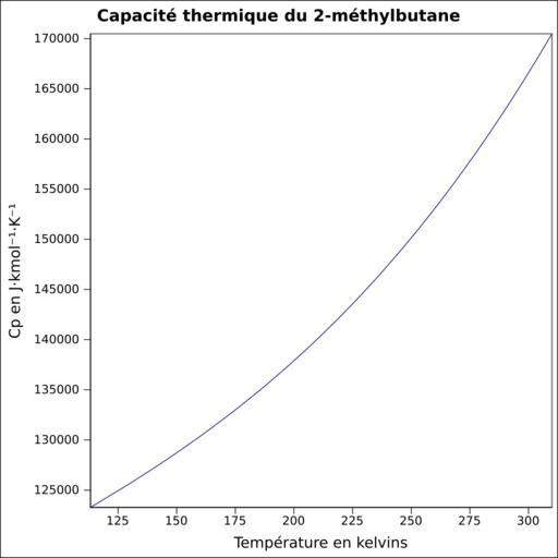 | Keywords: Capacité thermique 2-méthylbutane.svg fr Capacité thermique liquide calculée d'après <br/> Robert H Perry et Donald W Green Perry's Chemical Engineers' Handbook McGraw-Hill USA 1997 7e éd 2400 p ISBN 0-07-049841-5 p 2-170 own Epop 2010-06-28 Created with Gnumeric Heat capacity |