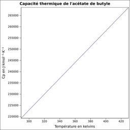 | Keywords: Capacité thermique acétate de butyle.svg fr Capacité thermique liquide calculée d'après <br/> Robert H Perry et Donald W Green Perry's Chemical Engineers' Handbook McGraw-Hill USA 1997 7e éd 2400 p ISBN 0-07-049841-5 p 2-170 own Epop 2010-06-28 Created with Gnumeric Heat capacity |