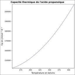 | Keywords: Capacité thermique acide propanoïque.svg fr Capacité thermique liquide calculée d'après <br/> Robert H Perry et Donald W Green Perry's Chemical Engineers' Handbook McGraw-Hill USA 1997 7e éd 2400 p ISBN 0-07-049841-5 p 2-170 own Epop 2010-06-28 Created with Gnumeric Heat capacity |