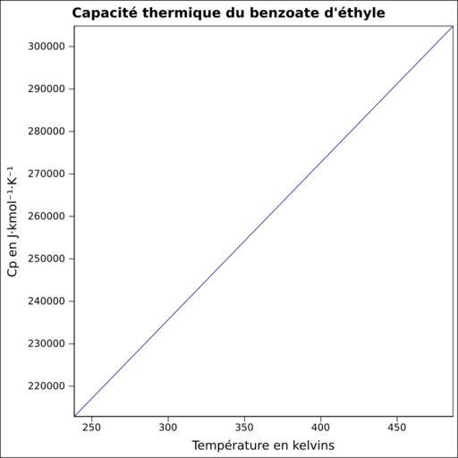 | Keywords: Capacité thermique benzoate d'éthyle.svg  fr Capacité thermique liquide calculée d'après <br/> Robert H Perry et Donald W Green Perry's Chemical Engineers' Handbook McGraw-Hill USA 1997 7e éd 2400 p ISBN 0-07-049841-5 p 2-170 own Epop 2010-06-28 Created with Gnumeric Heat capacity |