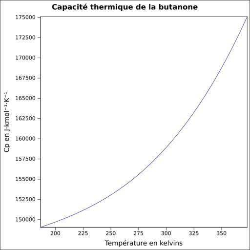 | Keywords: Capacité thermique butanone.svg fr Capacité thermique liquide calculée d'après <br/> Robert H Perry et Donald W Green Perry's Chemical Engineers' Handbook McGraw-Hill USA 1997 7e éd 2400 p ISBN 0-07-049841-5 p 2-170 own Epop 2010-06-28 Created with Gnumeric Heat capacity |