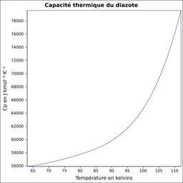 | Keywords: Capacité thermique diazote.svg fr Capacité thermique liquide calculée d'après <br/> Robert H Perry et Donald W Green Perry's Chemical Engineers' Handbook McGraw-Hill USA 1997 7e éd 2400 p ISBN 0-07-049841-5 p 2-170 own Epop 2010-06-28 Created with Gnumeric Heat capacity |
