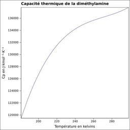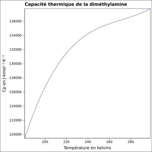 | Keywords: Capacité thermique diméthylamine.svg fr Capacité thermique liquide calculée d'après <br/> Robert H Perry et Donald W Green Perry's Chemical Engineers' Handbook McGraw-Hill USA 1997 7e éd 2400 p ISBN 0-07-049841-5 p 2-170 own Epop 2010-06-28 Created with Gnumeric Heat capacity |